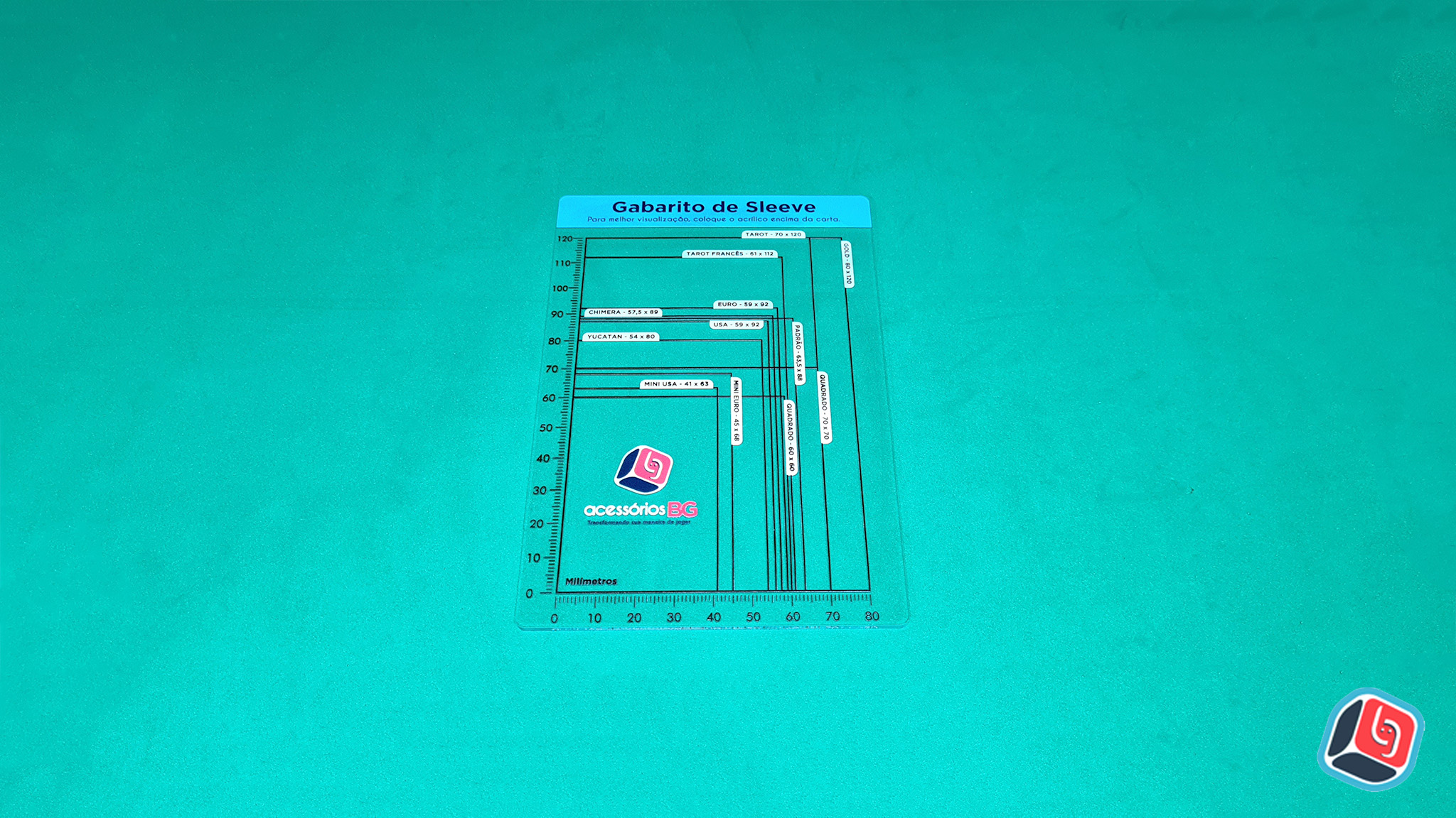 Um gabarito de sleeve impresso no acrílico para colocar a carta embaixo e facilitar a vizualicação da régua!