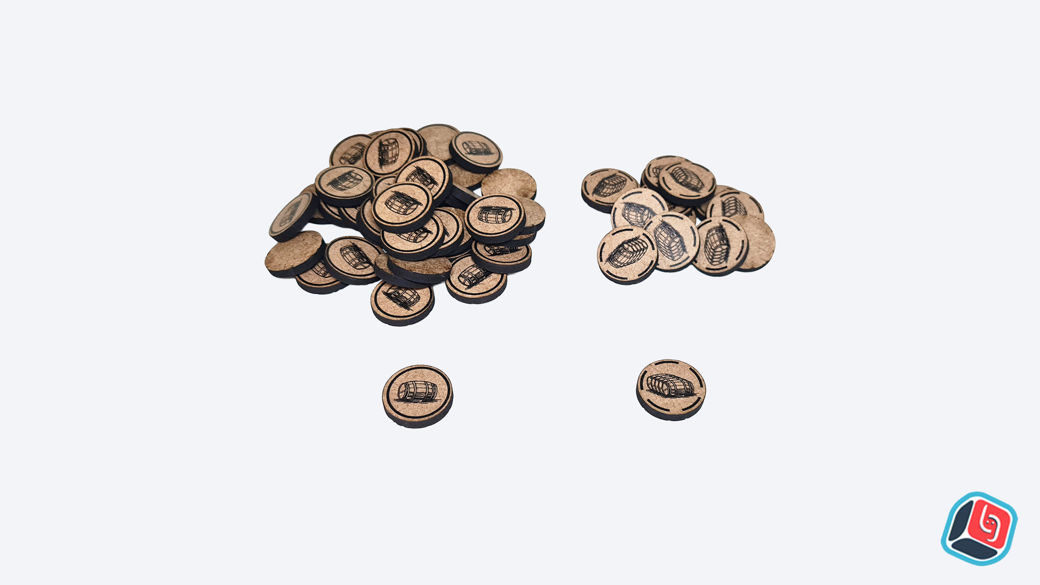 Tokens em MDF 3mm impresso UV para substituir as cartas de barris.